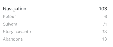 Du fait que de nombreux utilisateurs cliquent de manière très rapide lorsqu’ils parcourent les Stories Instagram, les données « Retour », « Story suivante » et « Abandons » sont de meilleurs indicateurs pour juger des performances de vos contenus.