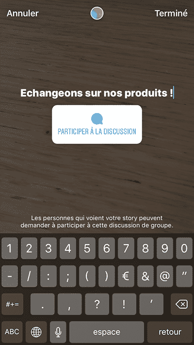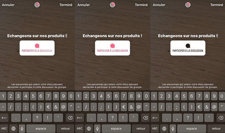 Utiliser le sticker « Discussion » vous permettra d’inviter les abonnés afin d’être membre d’un groupe exclusif, où vous annoncerez la tenue d’une promotion. Cela ne vous permettra pas seulement de construire un sens d’exclusivité mais également récompenser vos plus fidèles followers.