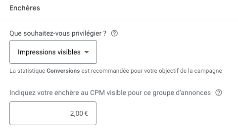 Vous devrez définir le montant maximal que vous êtes prêt à dépenser pour 1 000 impressions de votre publicité.