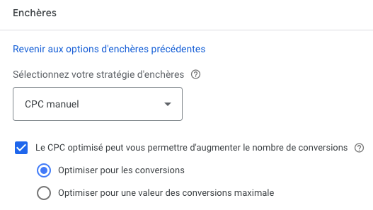 Il sera possible de choisir le CPC optimisé afin d’optimiser le nombre de conversions générées par vos campagnes.