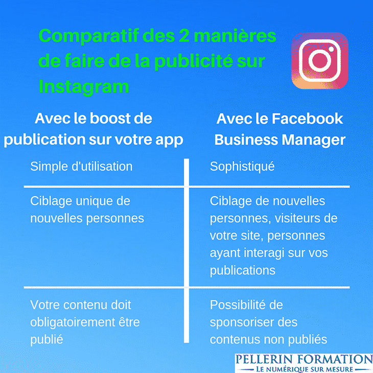 Il existe deux grands outils pour mettre en place des publicités sur Instagram :