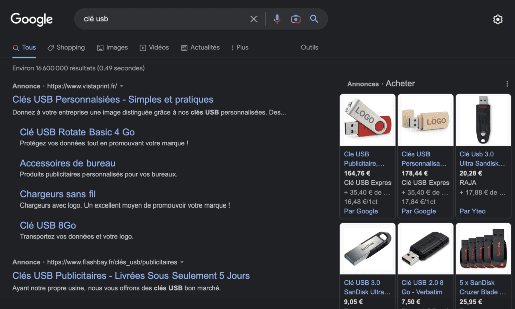 Une impression Google Ads correspond à l’apparition de votre annonce dans les résultats de recherche par exemple.