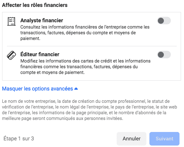 Tout au long de cet article, je vous expliquerai en détail quelles sont les différences entre les trois types d’utilisateurs du Business Manager Facebook prévus dans les paramètres d’entreprise à savoir :