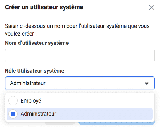 Lors de votre ajout d’un utilisateur système, vous aurez deux options :