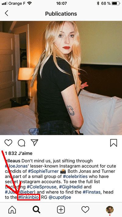 En utilisant Linkin.bio, le média redirige ses abonnés vers ses derniers contenus en ajoutant un appel à l’action dans la légende de la publication :