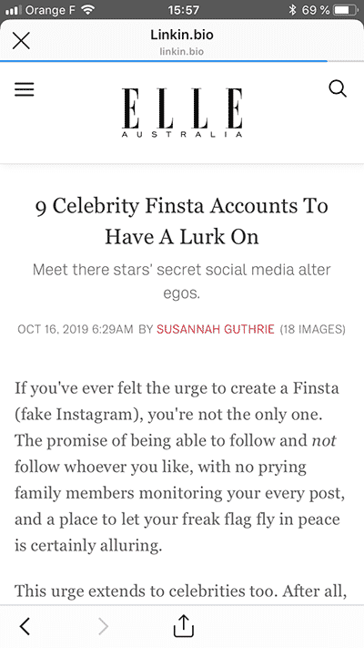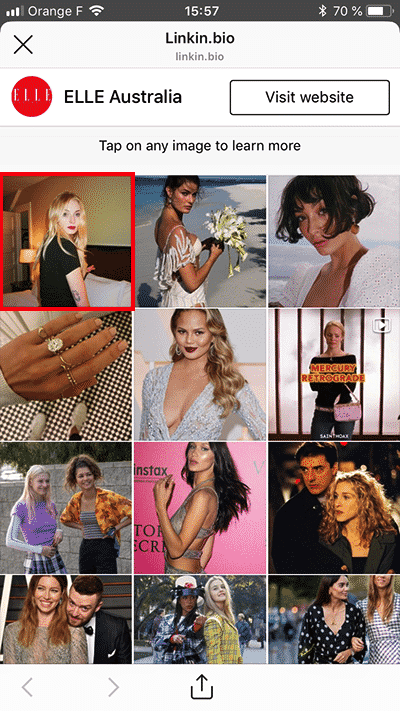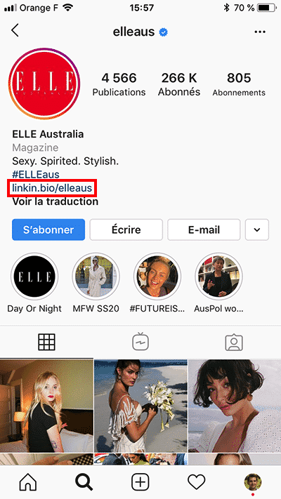 Par exemple, le compte @elleaus permet d’accéder facilement aux articles correspondant aux publications Instagram par l’intermédiaire d’un lien Linkin renseigné dans sa biographie.