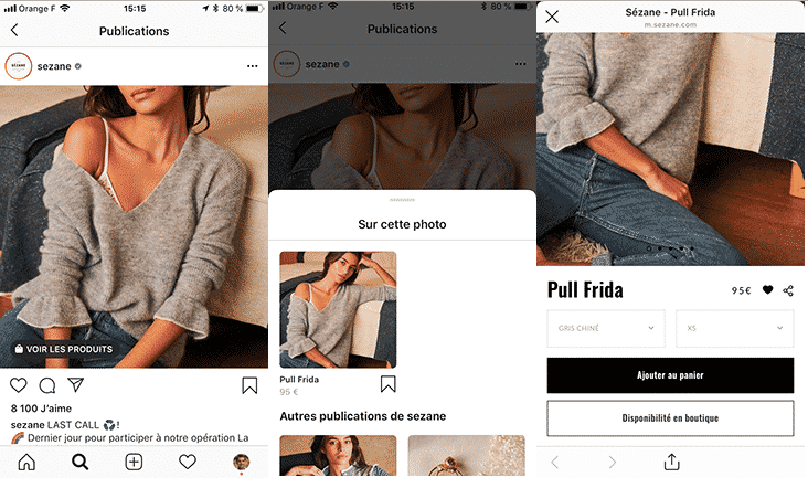 Regardez par exemple comment la marque Sézane se sert de cette fonctionnalité pour vendre ses vêtements :