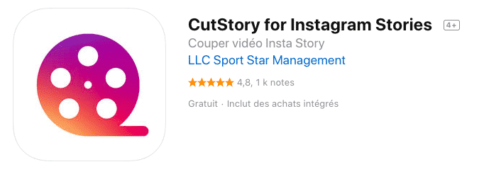 L’application la plus utilisée sur iOs pour découper une vidéo adaptée aux Stories Instagram est CutStory. Bien qu’un petit watermark soit présent sur vos vidéos, l’outil est gratuit et supprime son logo pour moins d’un dollar.