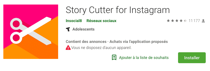 L’équivalent Androïd pour cette tâche se nomme Story Cutter par Insocial 8, une application également gratuite. Voici ci-dessous le lien pour y accéder :